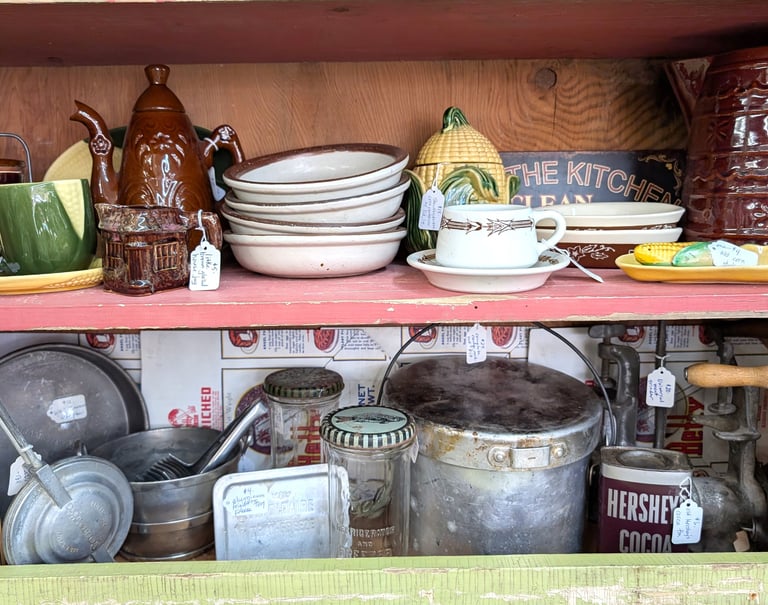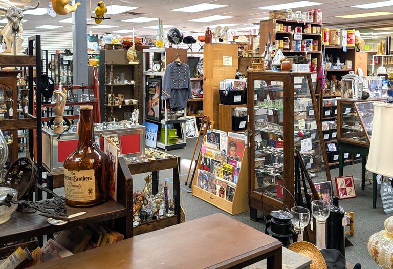 A cozy antique mall with 30+ vendor spaces offering timeless treasures, unique pieces, holiday surprises and estate sale services.